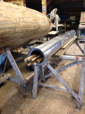 Kaz Rouz examen des espars | Le mât en cours de ponçage | |